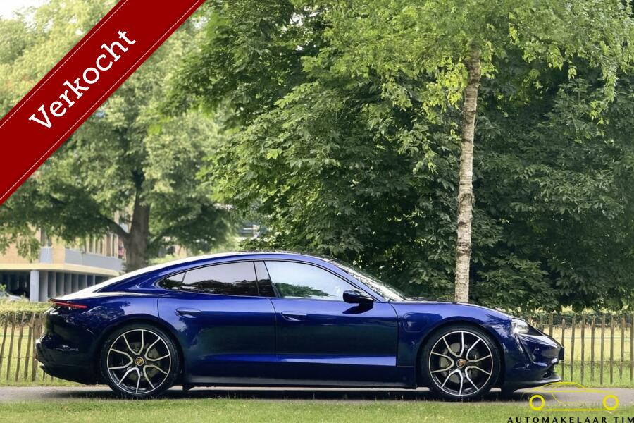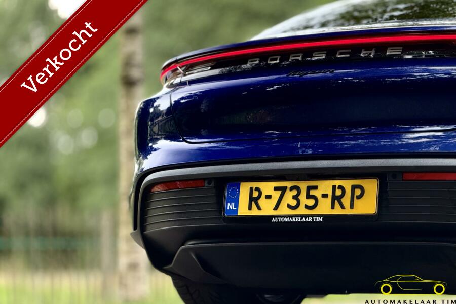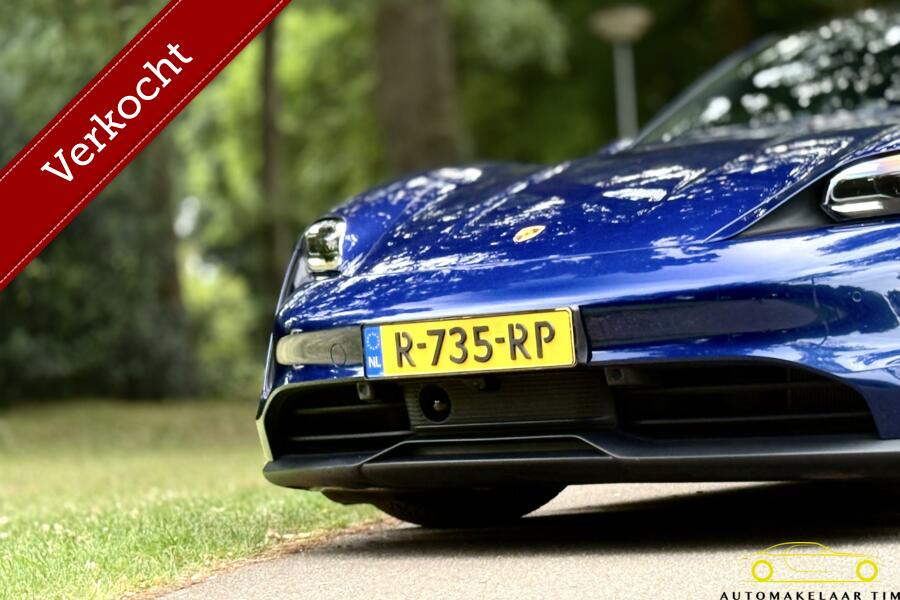 Origineel Nederlands geleverde sportieve Taycan in een unieke kleurstelling. Combinatie van Gentian Blue metallic met beige lederen interieur = stijlvol én onderscheidend.
