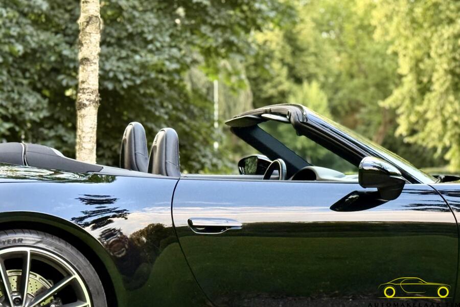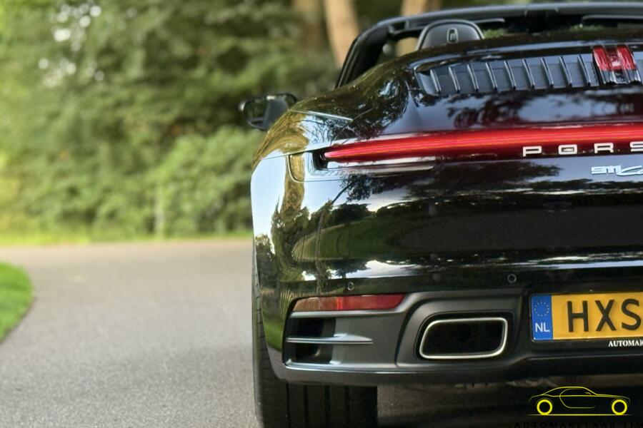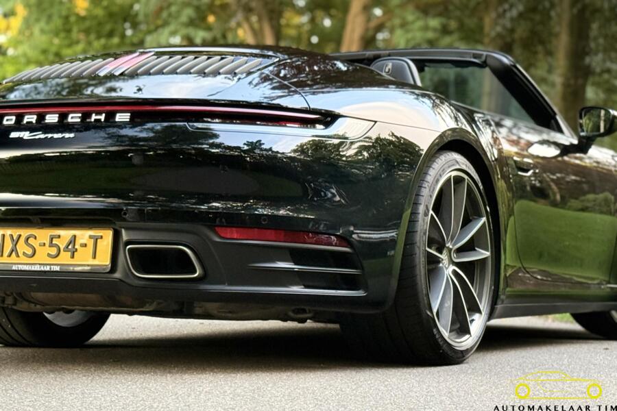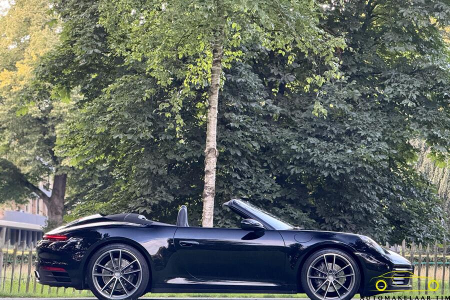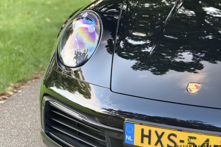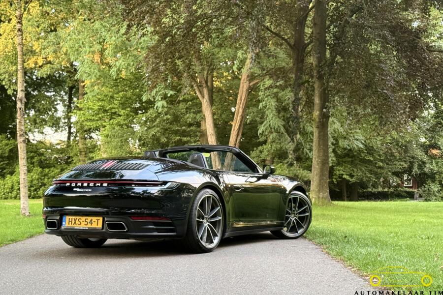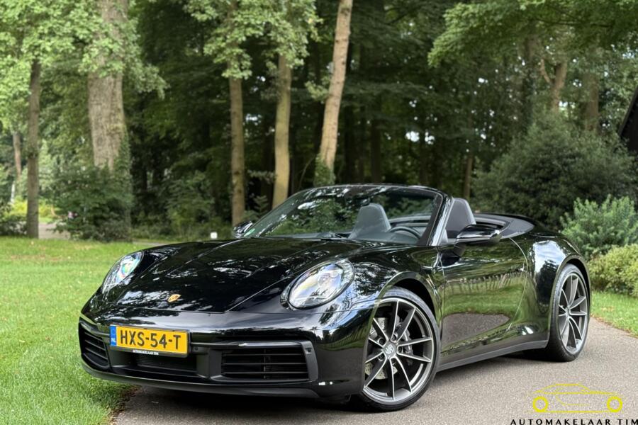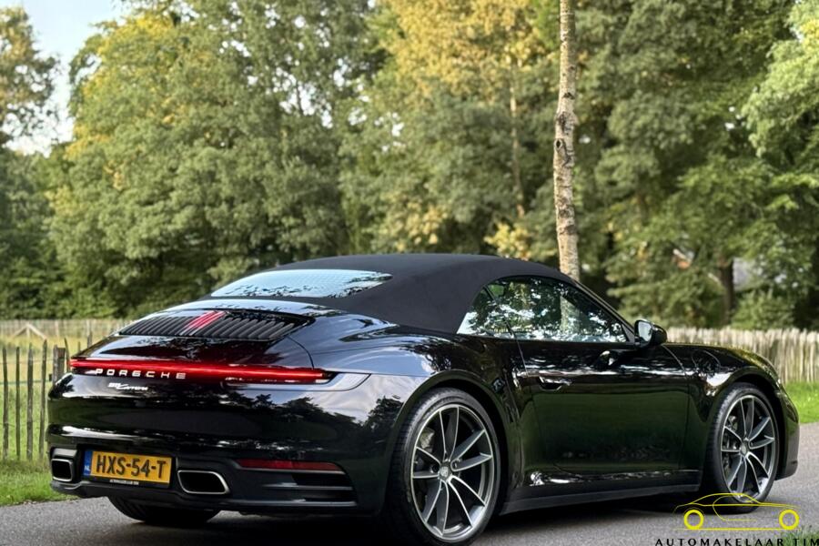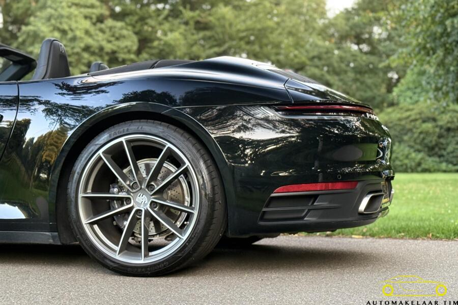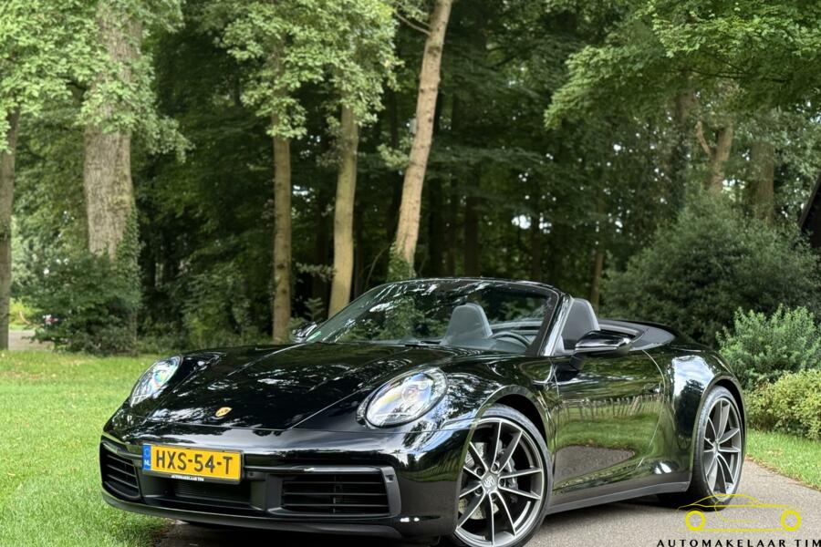 Prachtig uitgevoerde Porsche 992 Cabrio, en de foto's liegen er niet om, Zwart op zwart is altijd een goede combinatie en deze Porsche is diepzwart, gecombineerd met 21 inch velgen zeer stijlvol.