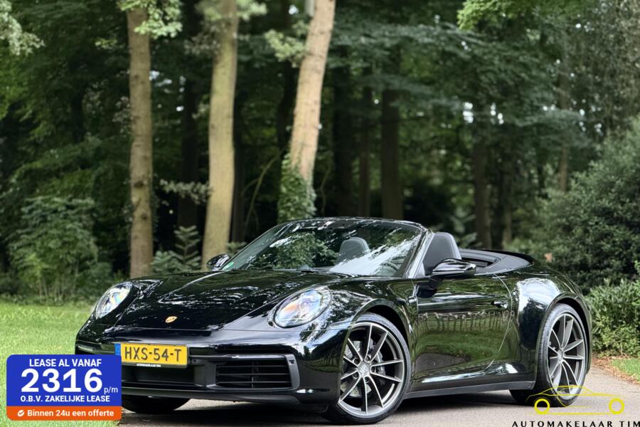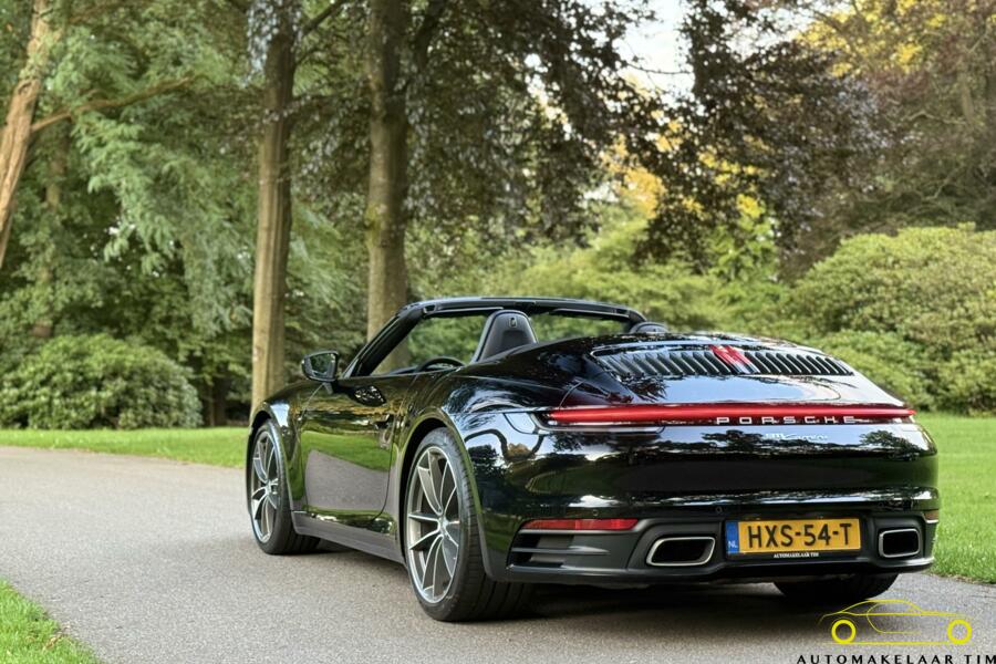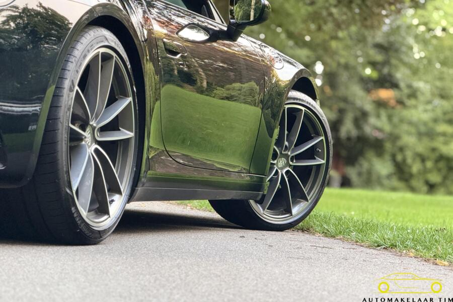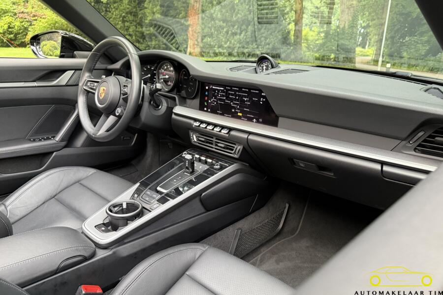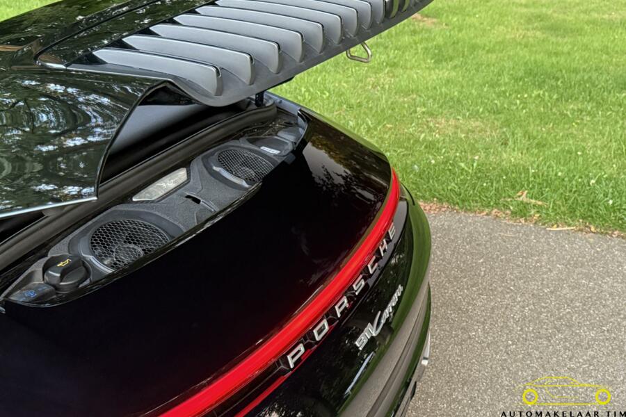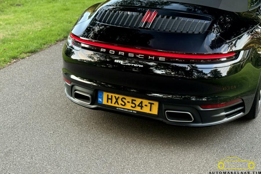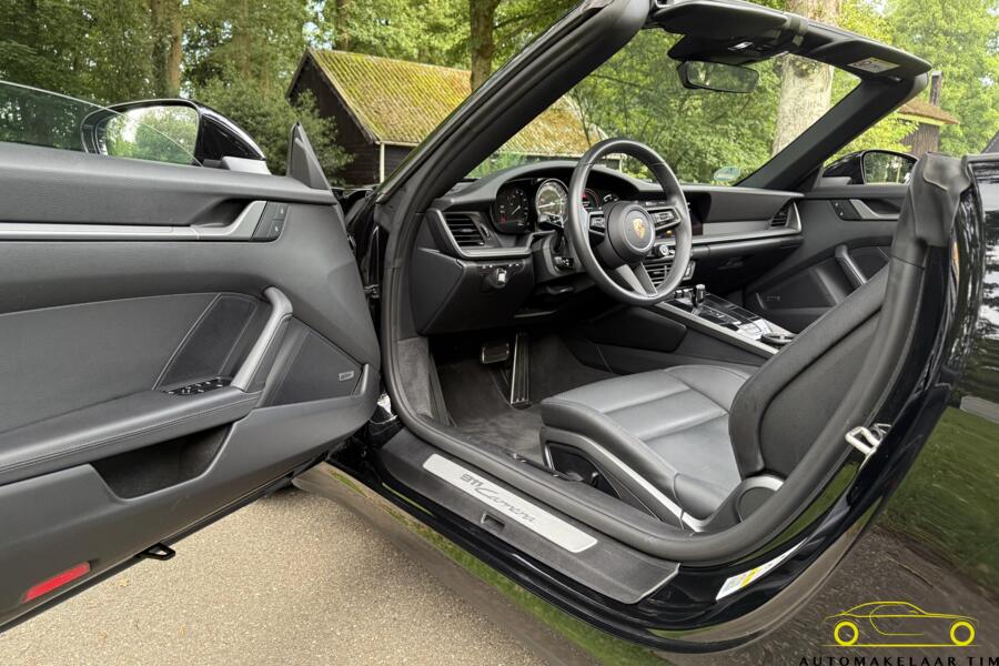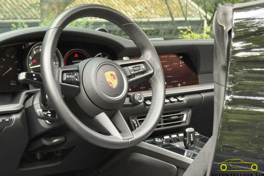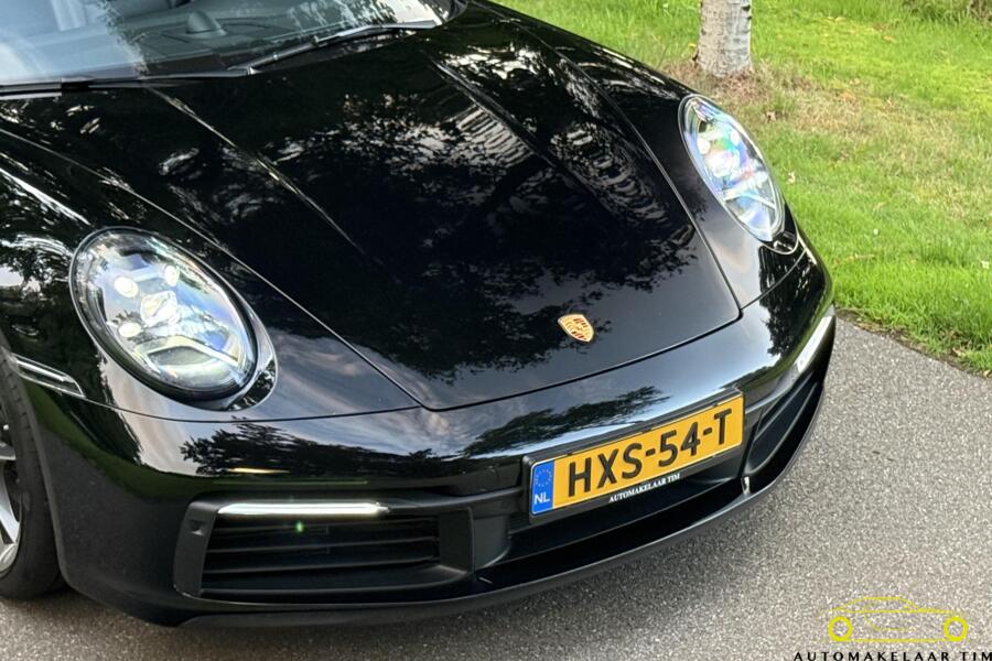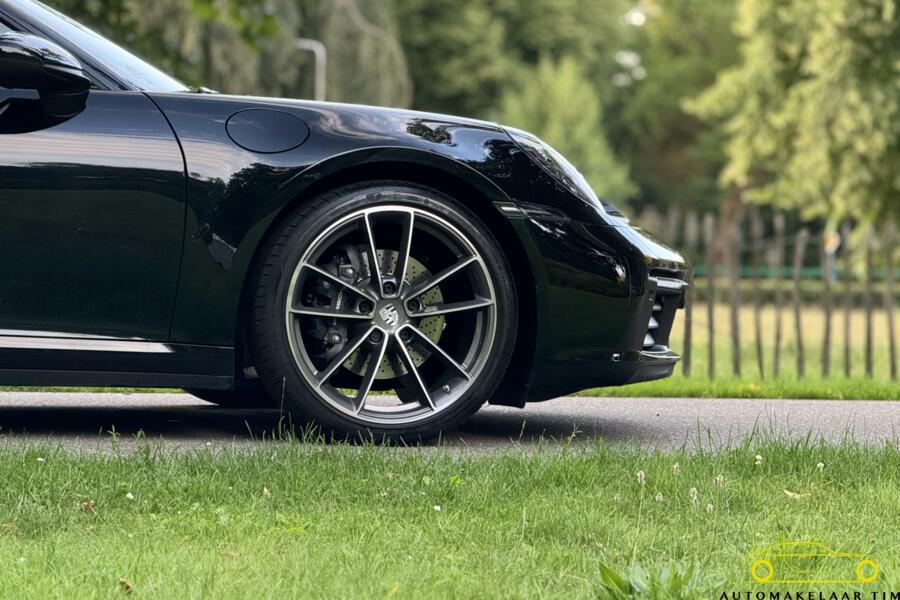 Prachtig uitgevoerde Porsche 992 Cabrio, en de foto's liegen er niet om, Zwart op zwart is altijd een goede combinatie en deze Porsche is diepzwart, gecombineerd met 21 inch velgen zeer stijlvol.