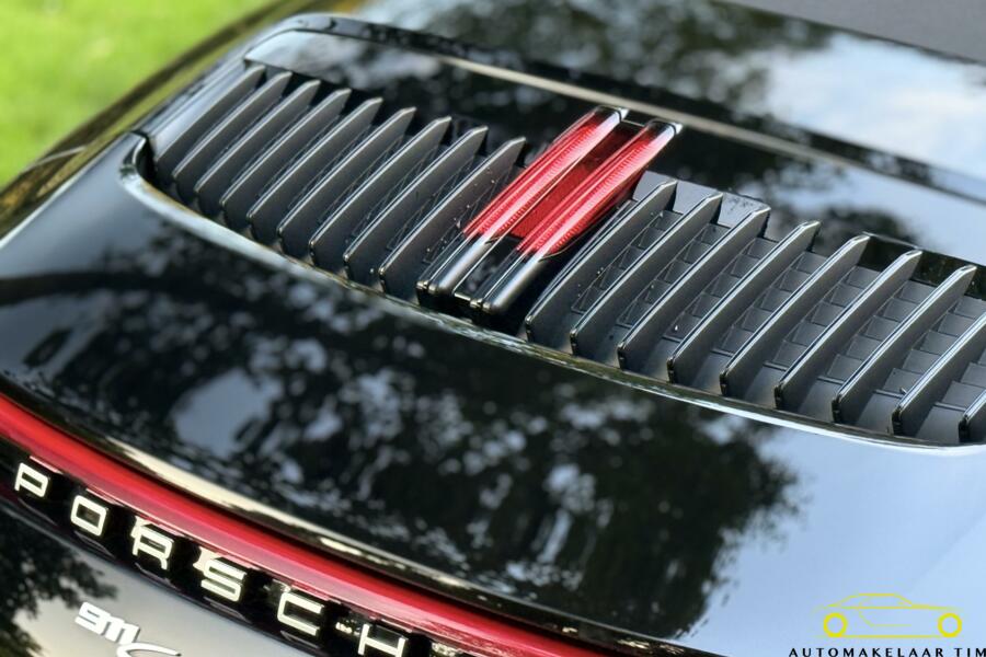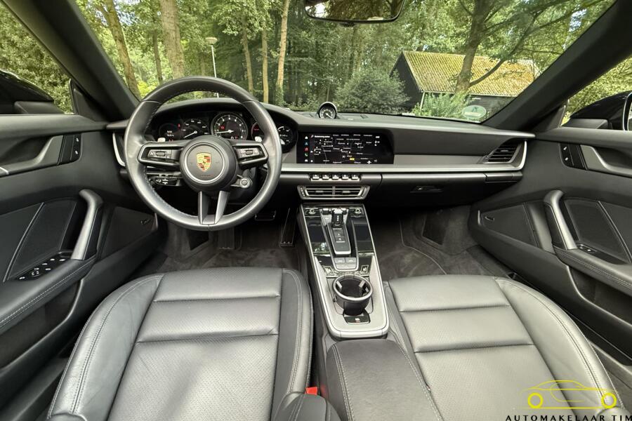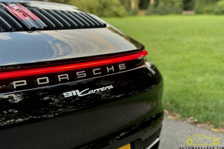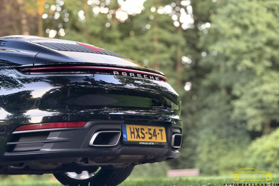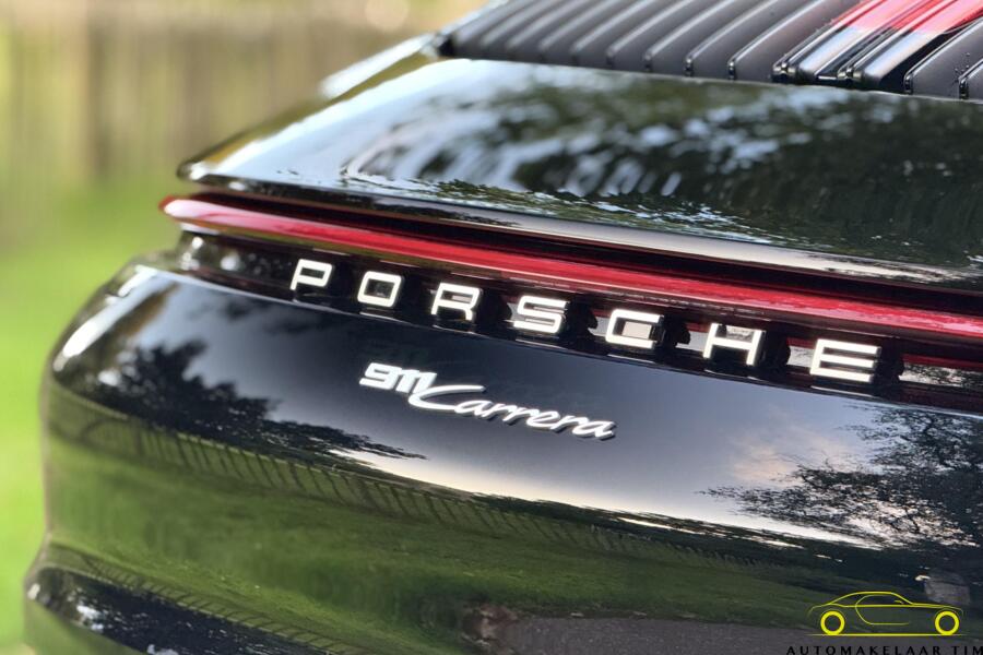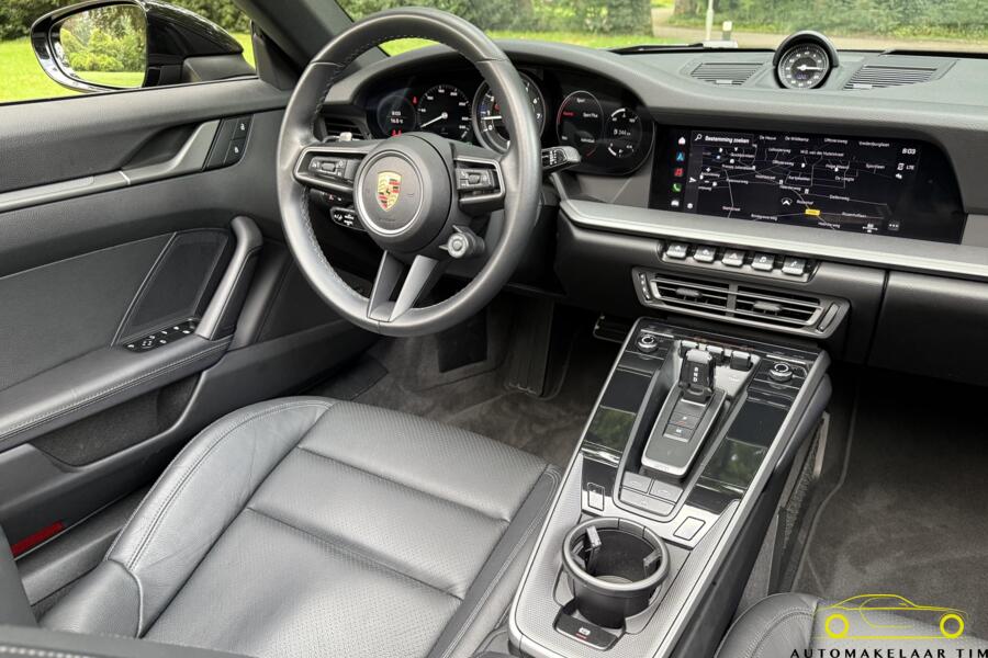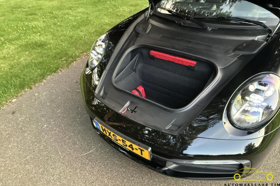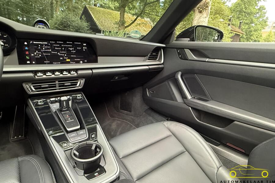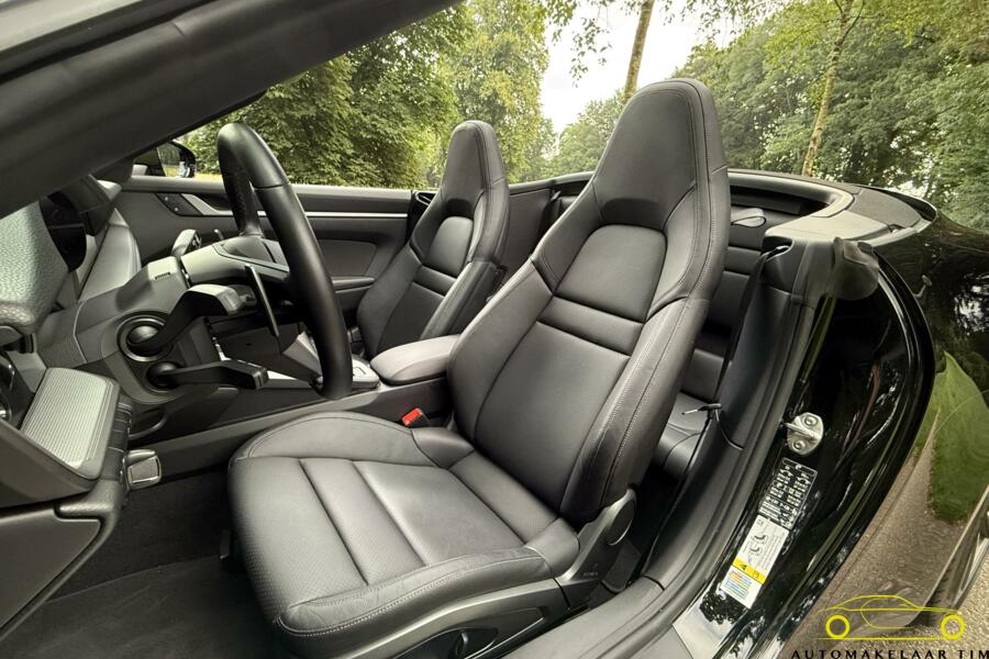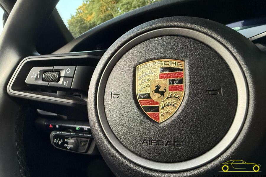 Prachtig uitgevoerde Porsche 992 Cabrio, en de foto's liegen er niet om, Zwart op zwart is altijd een goede combinatie en deze Porsche is diepzwart, gecombineerd met 21 inch velgen zeer stijlvol.